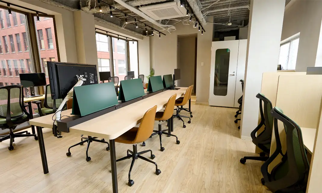高級オフィスチェアやモニターなどより集中して作業しやすいエリア。(会話禁止。個室のみWeb会議可)
